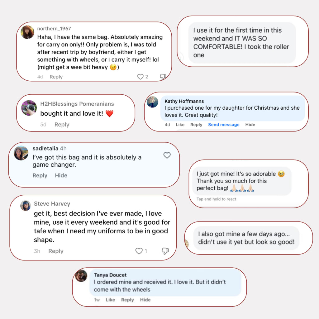 "The VeloraBag makes travel fun and fashionable. I receive compliments everywhere I go!"